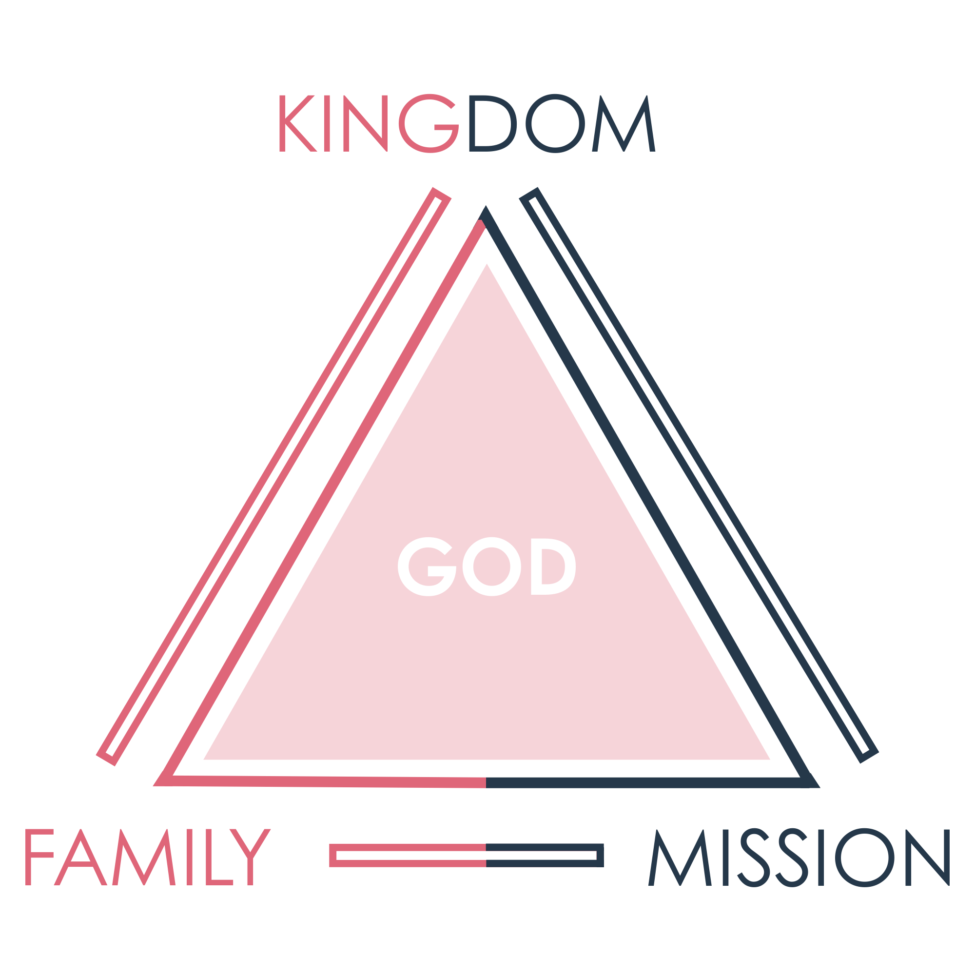 In our lives, all three areas function as interdependent pieces that are joined together through the work of the Spirit. By the Spirit you have become a child of the King, a brother or sister in God’s family and you work as an ambassador of his Kingdom. These three identities are held in tension together and they help explain and define one another. To help us picture this we use a triangle (see diagram)